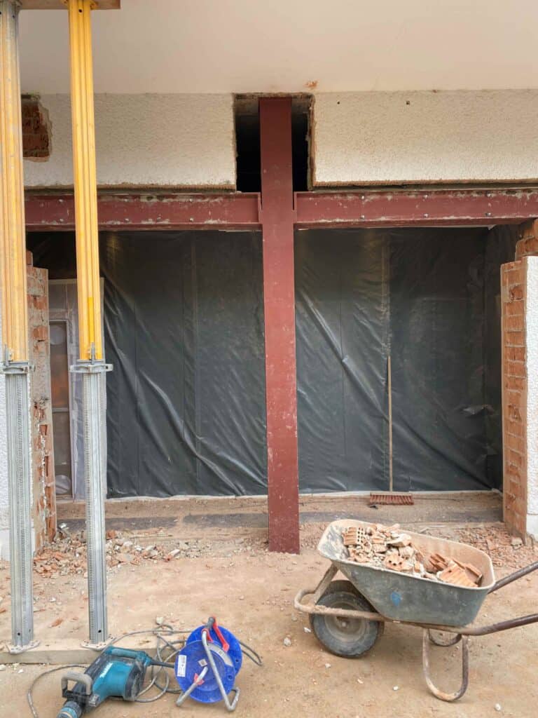 Stahlträger einbauen bei der Metzgerei Naumann